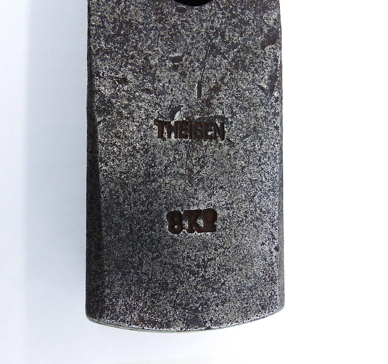 Alter Steinmetzhammer, Gewicht ca. 8 kg. Das Werkzeug weist altersbedingte Gebrauchsspuren auf, an einer Kante ist ein Stück der Oberfläche abgesplittert. Der Erhaltungszustand ist insgesamt solide und gut erkennbar – Details bitte dem Foto entnehmen.