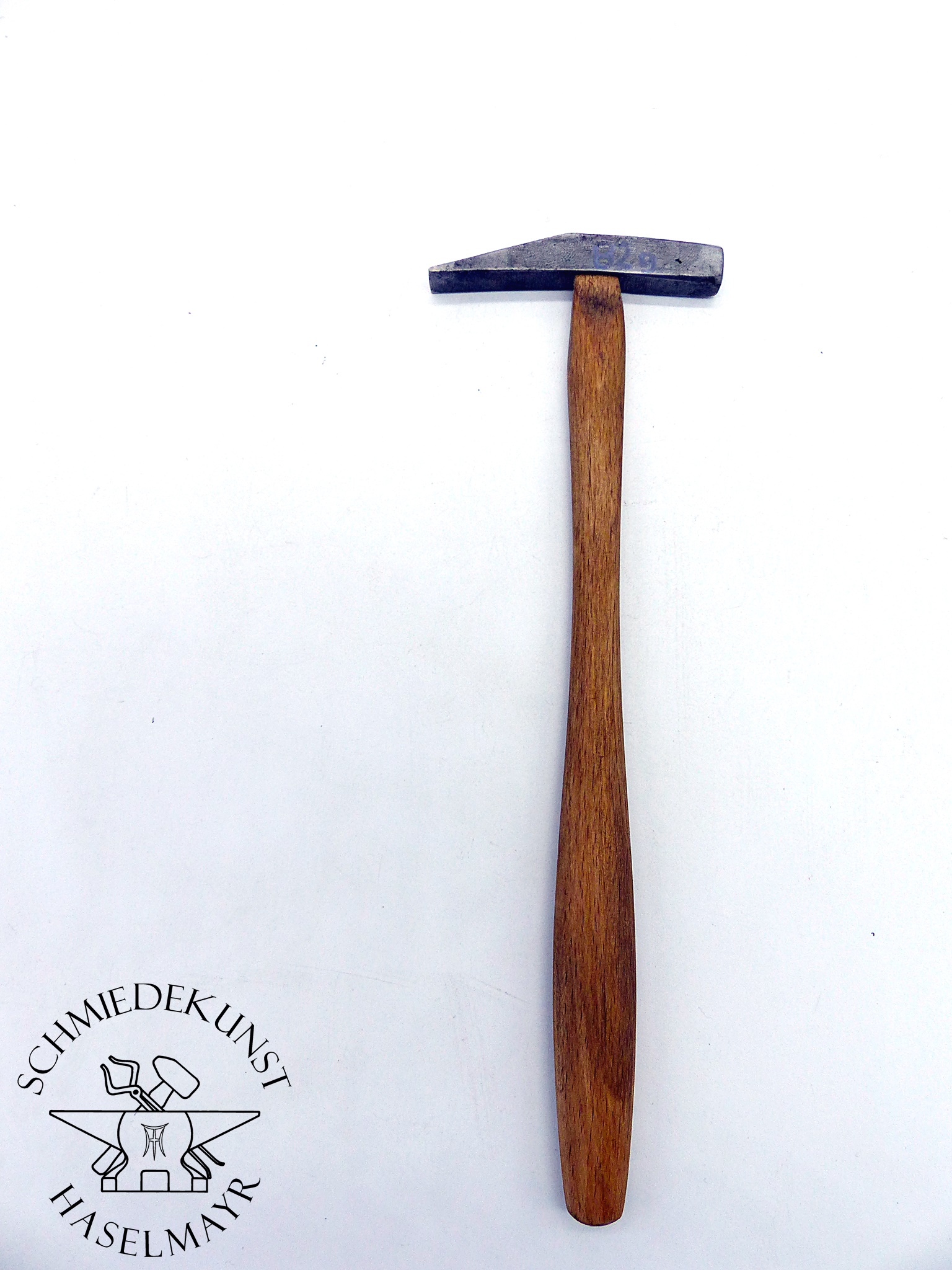 Gebrauchter Hammer aus einer aufgelösten Gesenkschmiede. Oberfläche altersbedingt angelaufen, Hammerbahn spiegelpoliert. Der Hammer ist sauber eingestielt und am Auge verschraubt.