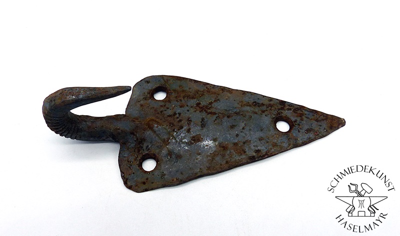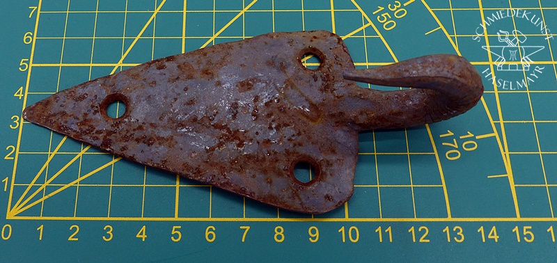 Haken mit Grundplatte. Mit natürlicher Rostpatina. Unikat.